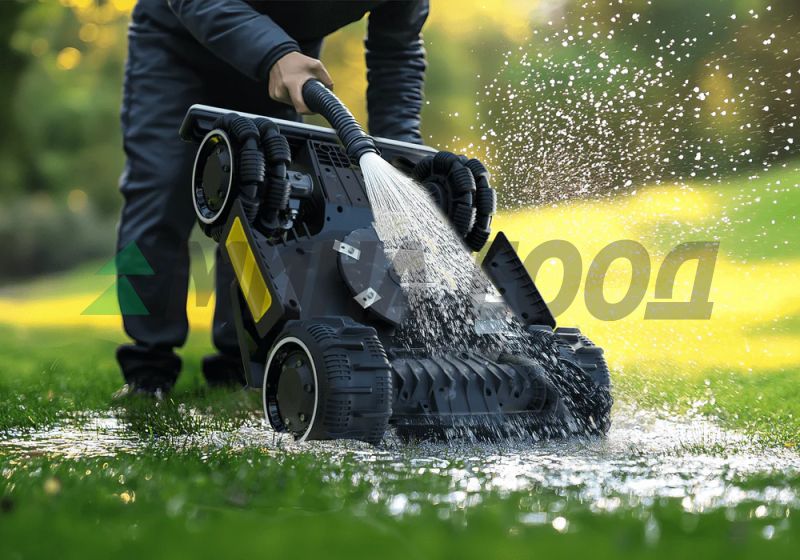 Оборудвана с всепосочни колела, които са с уникален дизайн, осигуряващи плавен завой на място, което улеснява работния процес, увеличавайки максимално ефективността и осигурявайки перфектно поддържан вид на двора.