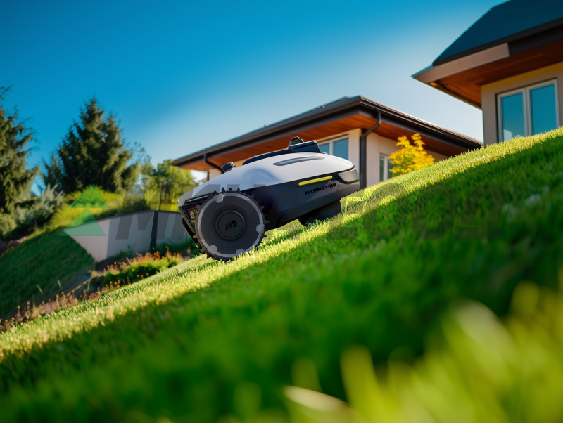 Робота за косене се справя с наклони до 45%, което означава, че е подходящ за 90% от стандартните дворове.