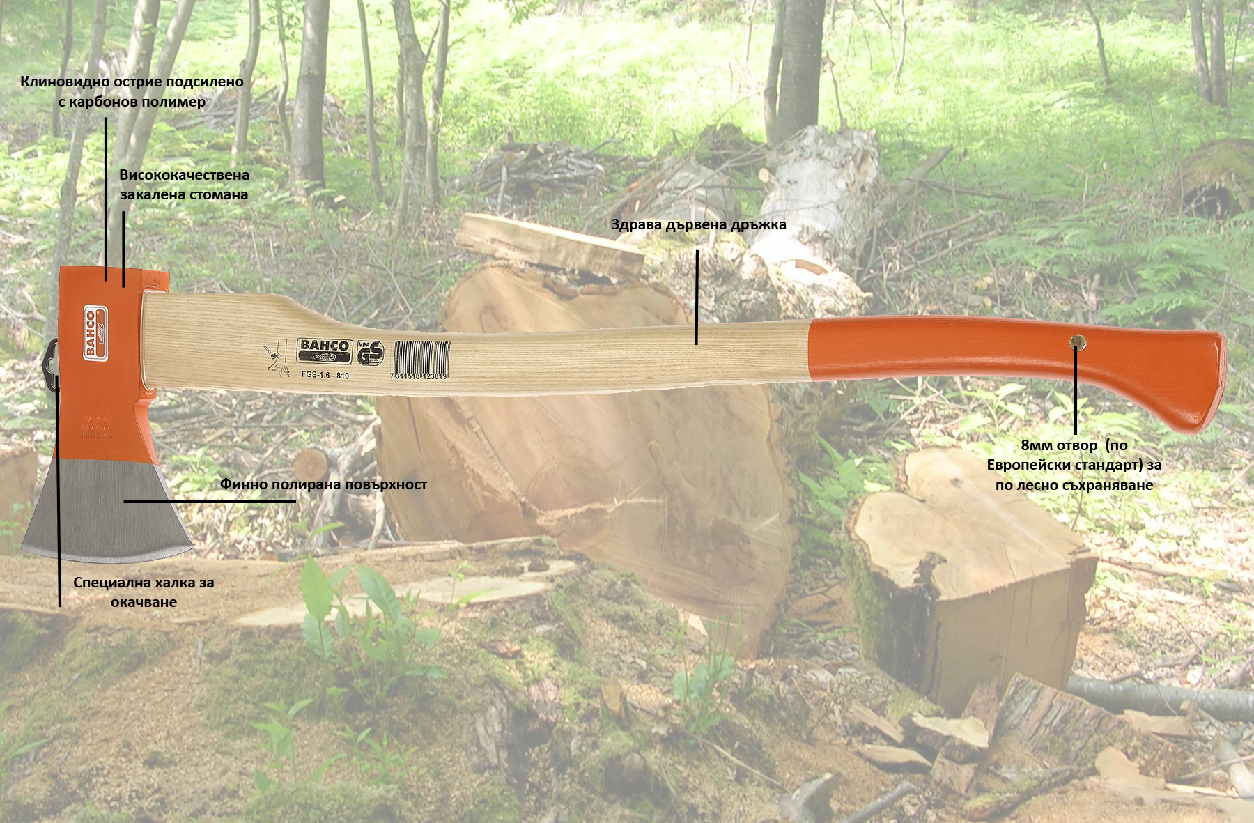 Брадви с по дълги глави за премахване на клони, както и за друга обща работа;